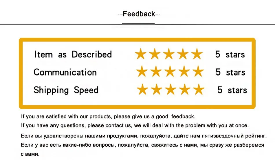 When you receive the item and satisfied with the product, please leave positive feedback and 5 scores DSR.