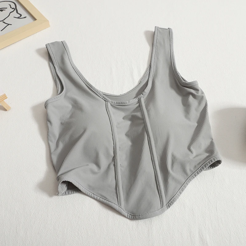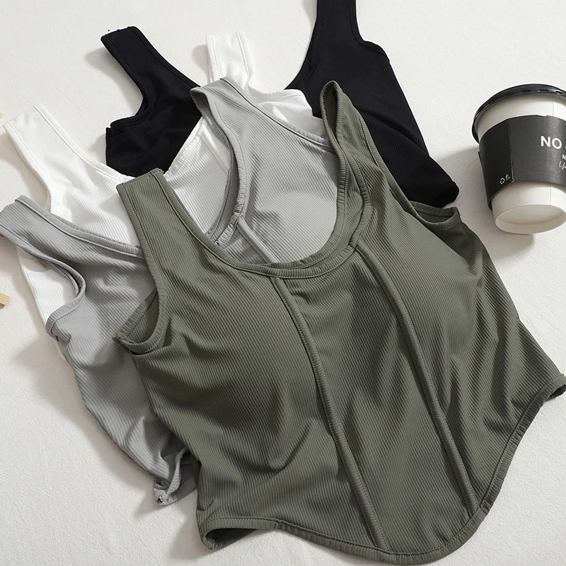 Y2K Sports Crop Top for Women with Bra Pad – Cotton Knit Camis Tank, Irregular Hem, Sleeveless Workout & Streetwear Summer Top for Teens & Girls