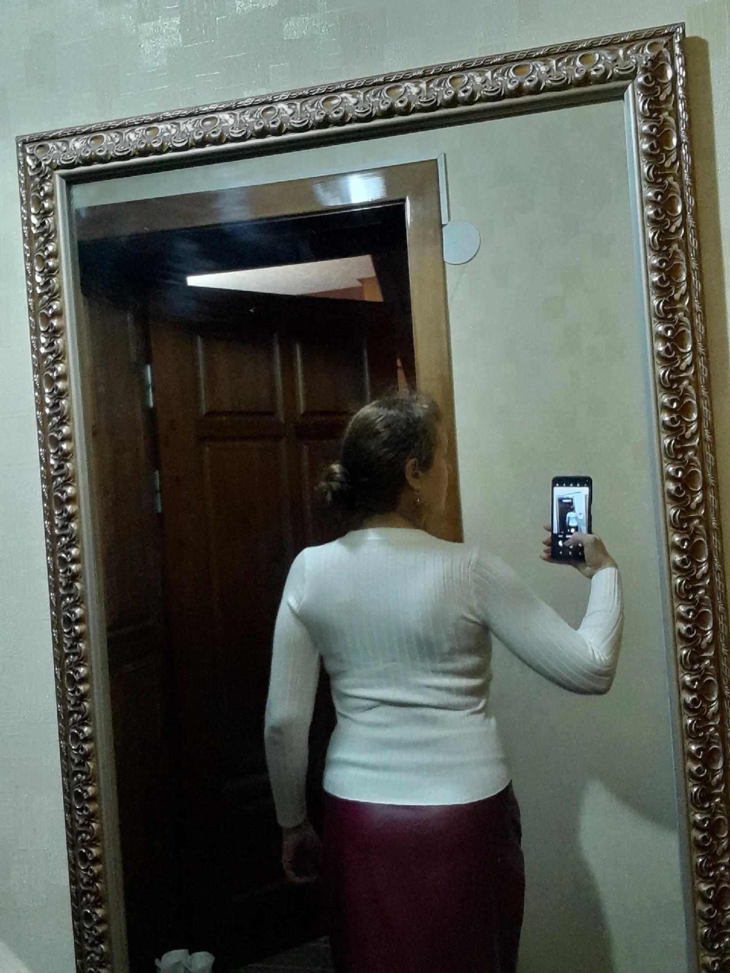 The delivery is fast for each five. I liked the jumper, gentle, I wanted a snow-white one. I was afraid that the sleeves would be short-they turned out to be normal. Medium-thick jumper-I need this under my jacket. I recommend for purchase.