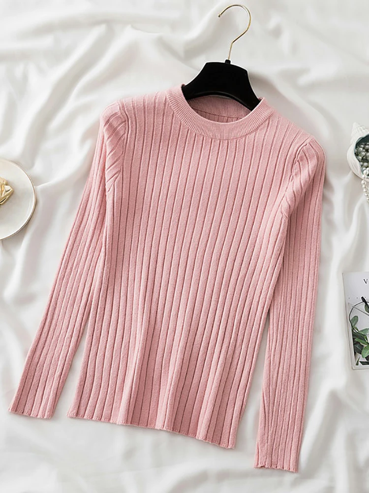 Women’s Slim-Fit Knit Sweater – Soft Long Sleeve Pullover, O-Neck, Korean Style Tight Jumper for Autumn & Winter Casual Wear
